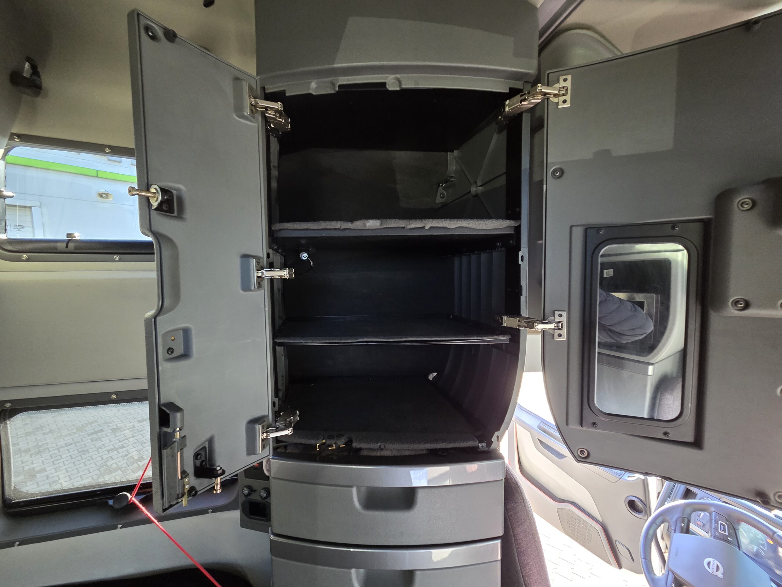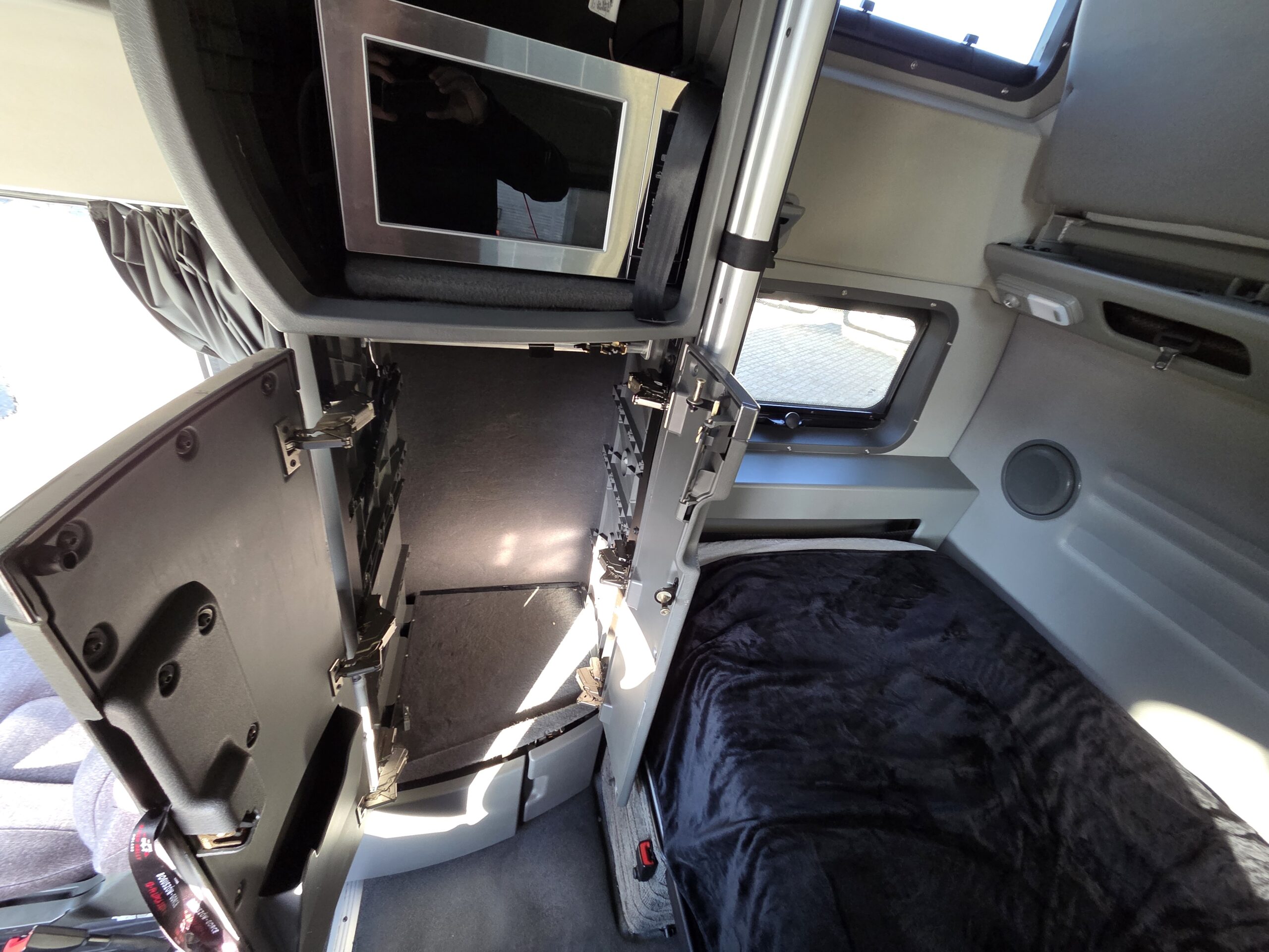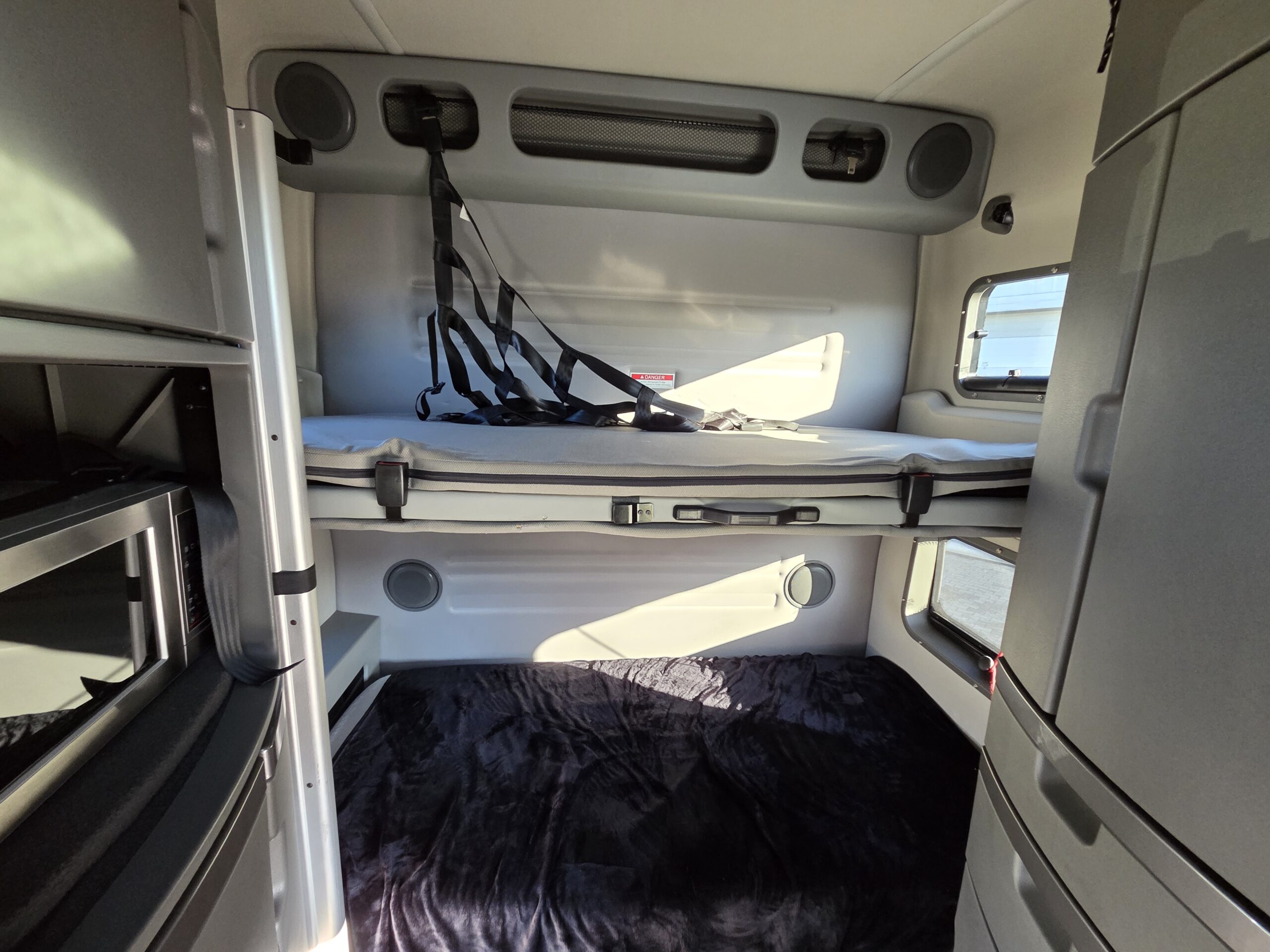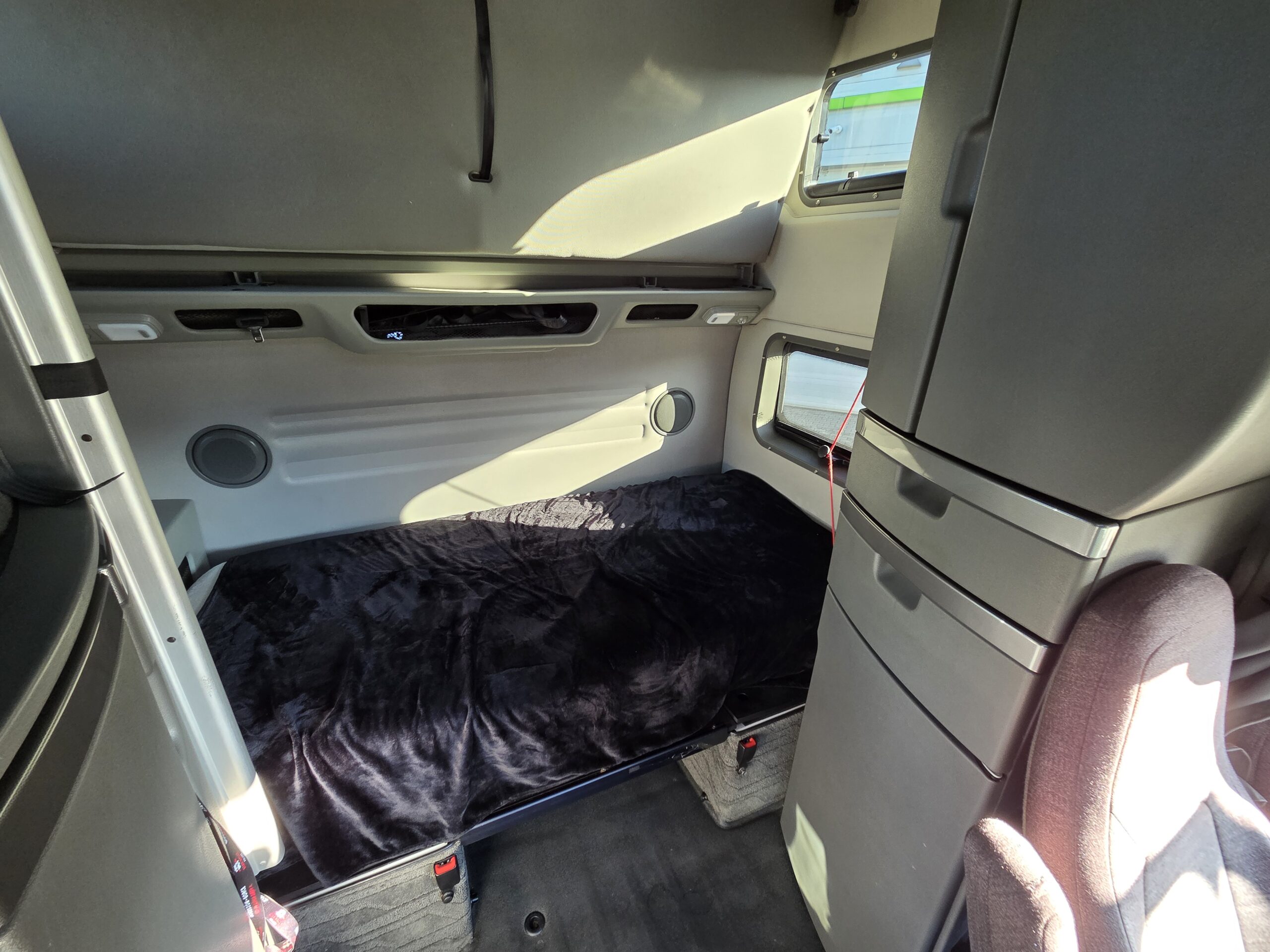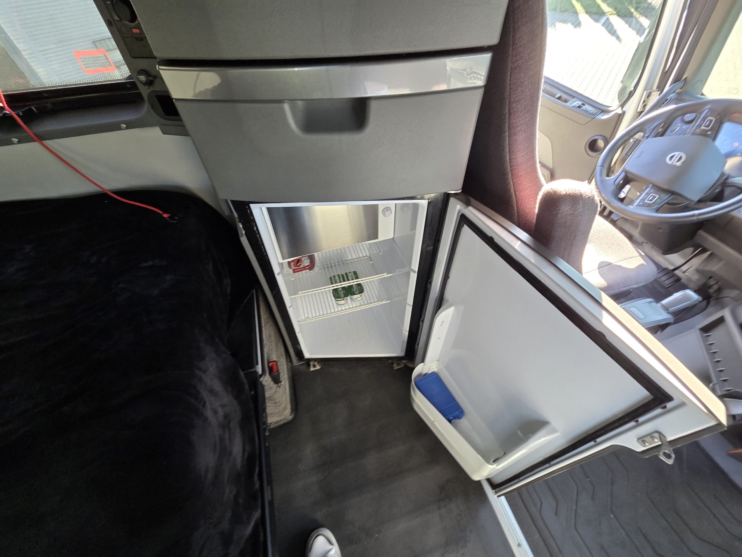 Volvo VNL860 łączy w sobie szwedzki układ napędowy, doskonale znany z europejskiego modelu FH, a także typowo amerykańskie nadwozie, z silnikiem umieszczonym przed kabiną i naprawdę olbrzymią sypialnią. W przypadku odmiany z oznaczeniem „860” mowa o największej kabinie z oferty, w której sama tylko część sypialna liczy ponad 192 centymetry długości. Tworzy to miejsce nie tylko na „salonkę” z dwoma łóżkami o szerokości 105 centymetrów, ale też na pionowe szafy, skrzydłowo otwieraną lodówkę oraz po prostu ogromną ilość. Pojazd od pierwszego właściciela, który użytkował go w USA i w Polsce.